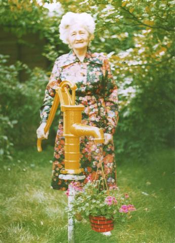 1981 besuchte uns meine Oma Luise zum letzten Mal in Solingen. Sie war schon lange krank und konnte kaum laufen, besonders litt sie an Rheuma. Diese Pumpe, die bei uns im Garten steht, hatte Willi seiner Luise in die Küche eingebaut, damit sie nicht so weit laufen muss, um Wasser zu holen. Kurze Zeit später wurden Wasserleitungen gelegt. Luise starb am 11. September 1983, genau an Karins 45. Geburtstag.