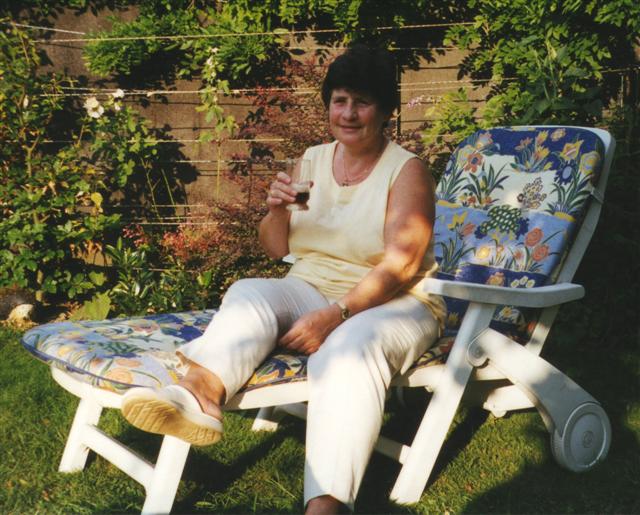 Karin liebte ihren Garten und ihr "Sonnenbett", wie sie es nannte (2001)