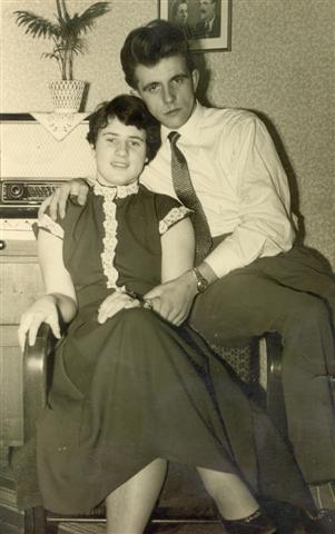 Karin hatte ihren Georg einen Tag nach ihrem 15. Geburtstag kennengelernt. Als er sie nach dem Tanz nach Hause brachte, erfuhr er, dass sie fünf Jahre jünger war als er. Ihm war klar, dass sie einfach zu jung für ihm war. Aber schon beim ersten Blick hatte er gedacht, dass sie die Frau sei, die er eines Tages heiraten könnte. Er konnte sie nicht vergessen, und auch Karin hatte sich in ihn verliebt. Zwei Jahre später kamen die beiden zusammen. Dieses Foto ist an dem Abend entstanden, an dem Georg seine Karin seiner Familie vorstellte.